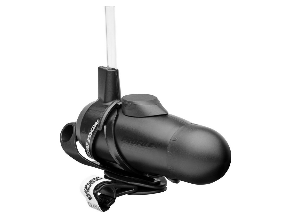 O Aero HC System, aerodinâmico e recarregável, posiciona estrategicamente a hidratação entre os braços do ciclista para um perfil aerodinâmico elegante e oculto.