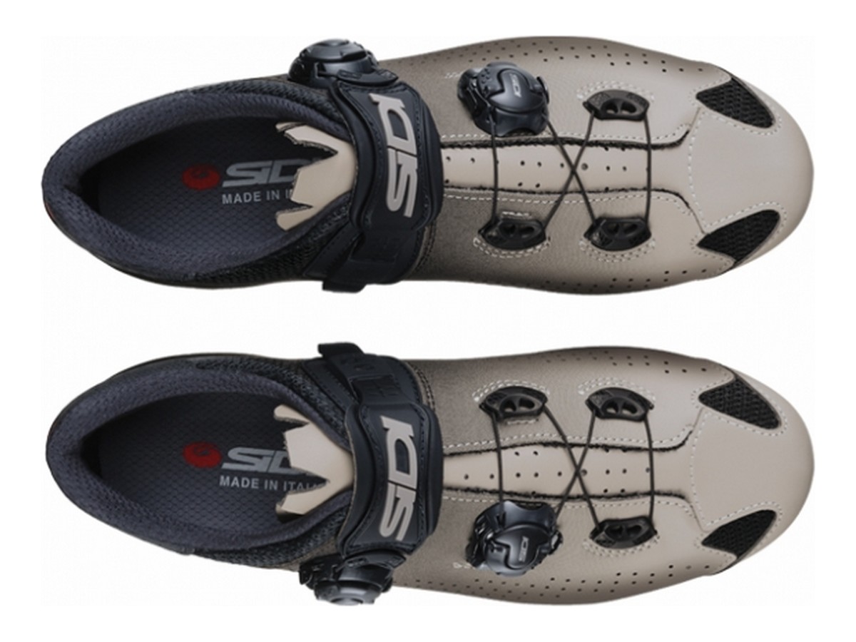O encarte central com o logotipo da Sidi funciona como antiderrapante e é prático e útil principalmente para os usuários menos experientes.
