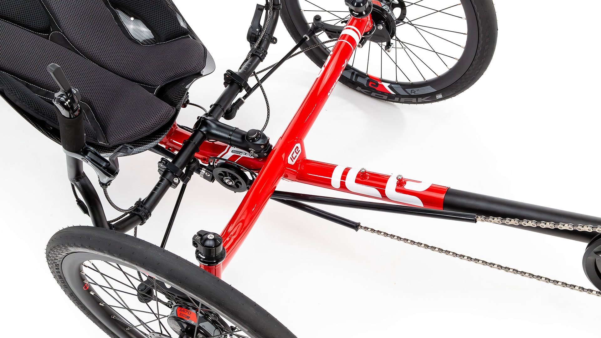 Nossos quadros são projetados para responder às forças do ciclista e da estrada. Cada elemento do quadro Sprint X foi projetado para complementar o outro, dando aos triciclos ICE suas famosas características de pilotagem.