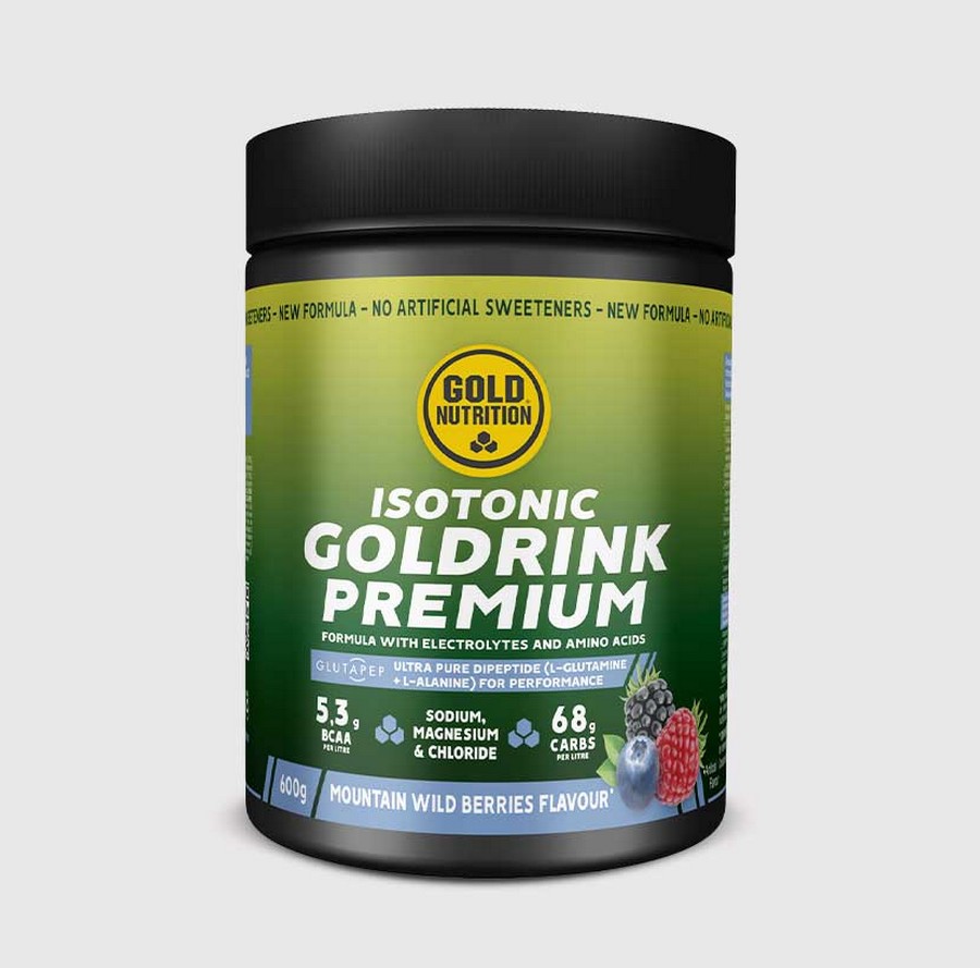 Goldrink Premium GoldNutrition® é uma bebida isotónica de excelência, sem adoçantes artificiais. É composta por glucose e frutose no rácio ideal de 2:1, por eletrólitos importantes, aminoácidos de cadeia ramificada (BCAA´s) e Glutapep® um ingrediente patenteado com dois péptidos (L-alanina e L-glutamina) de rápida absorção que promovem o desempenho e recuperação.